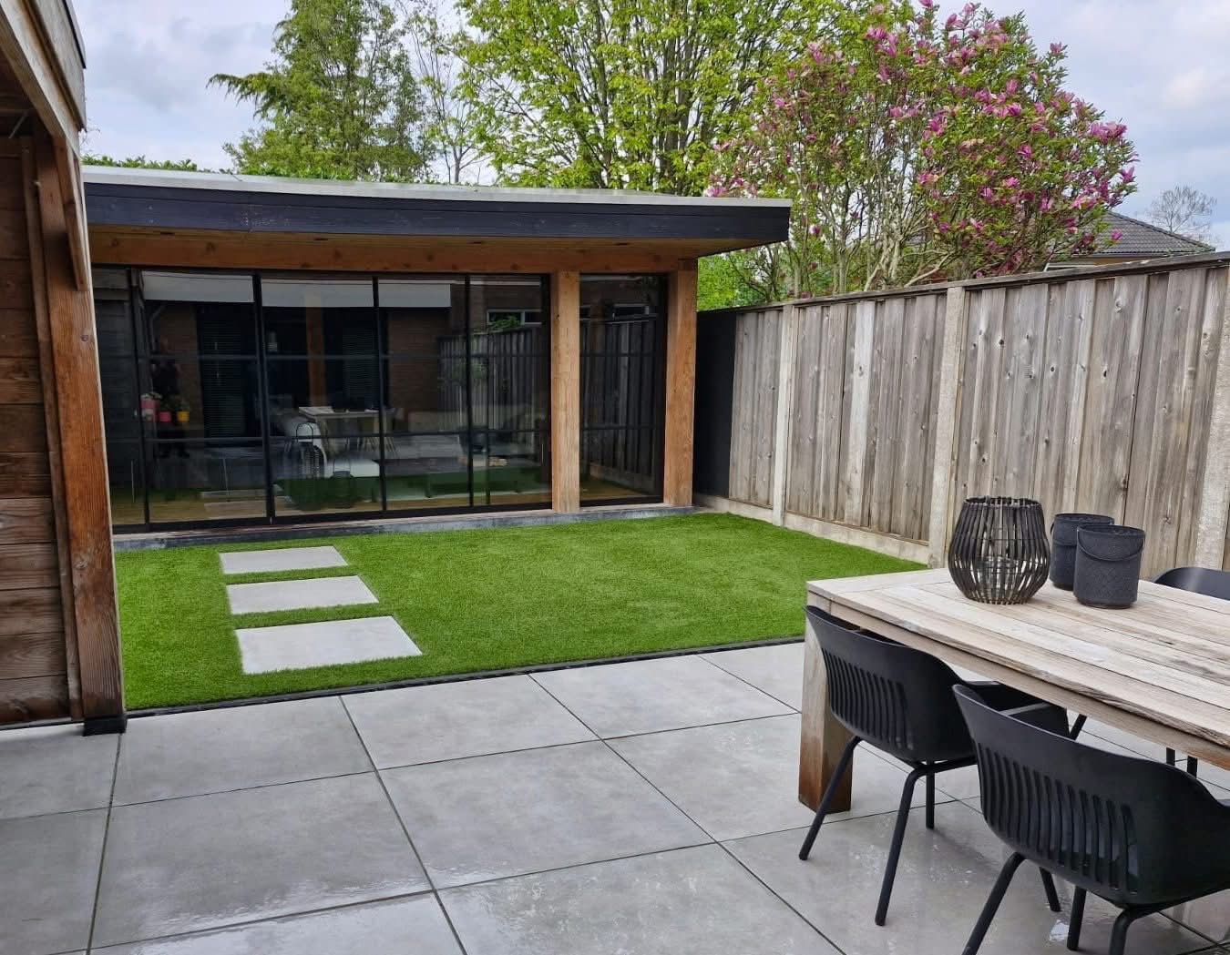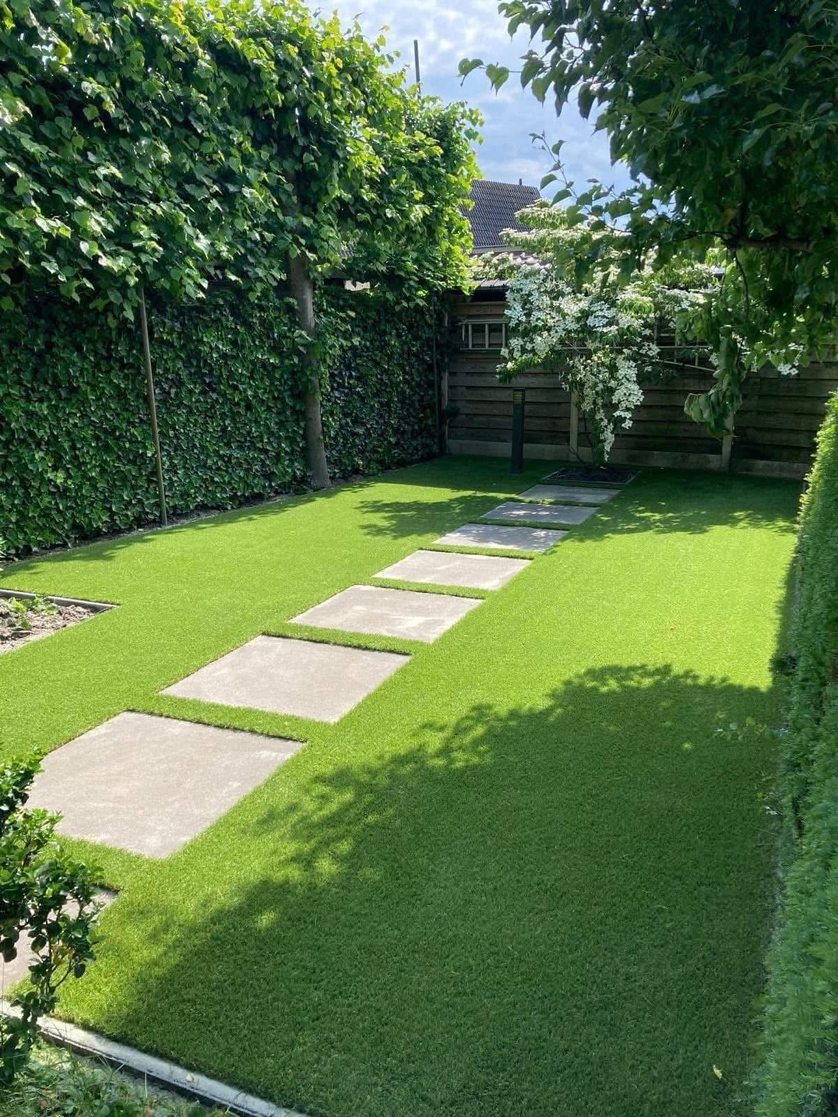 In combinatie met kunstgras creëer je een strakke moderne uitstraling – én zeg je voorgoed vaarwel tegen modderige plekken of verwelkt gras tussen de stenen!